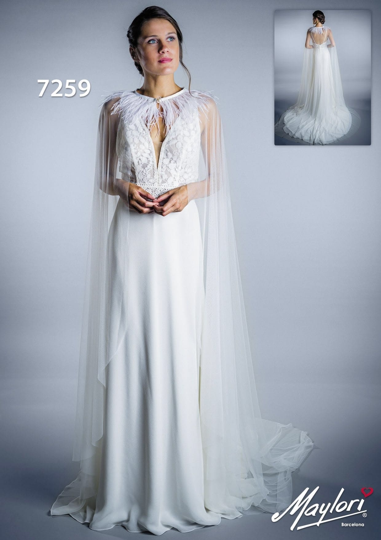Capa de novia hecha con tul sedoso y pluma de avestruz en cuello. El largo es personalizable.