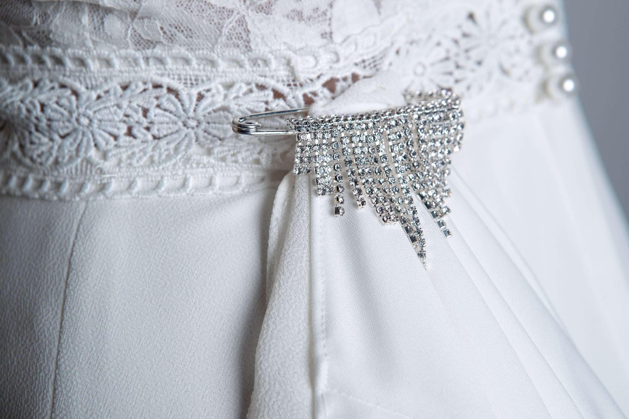 Imperdibles de novia para sujetar las colas del vestido al mismo, para mayor comodidad en el convite.