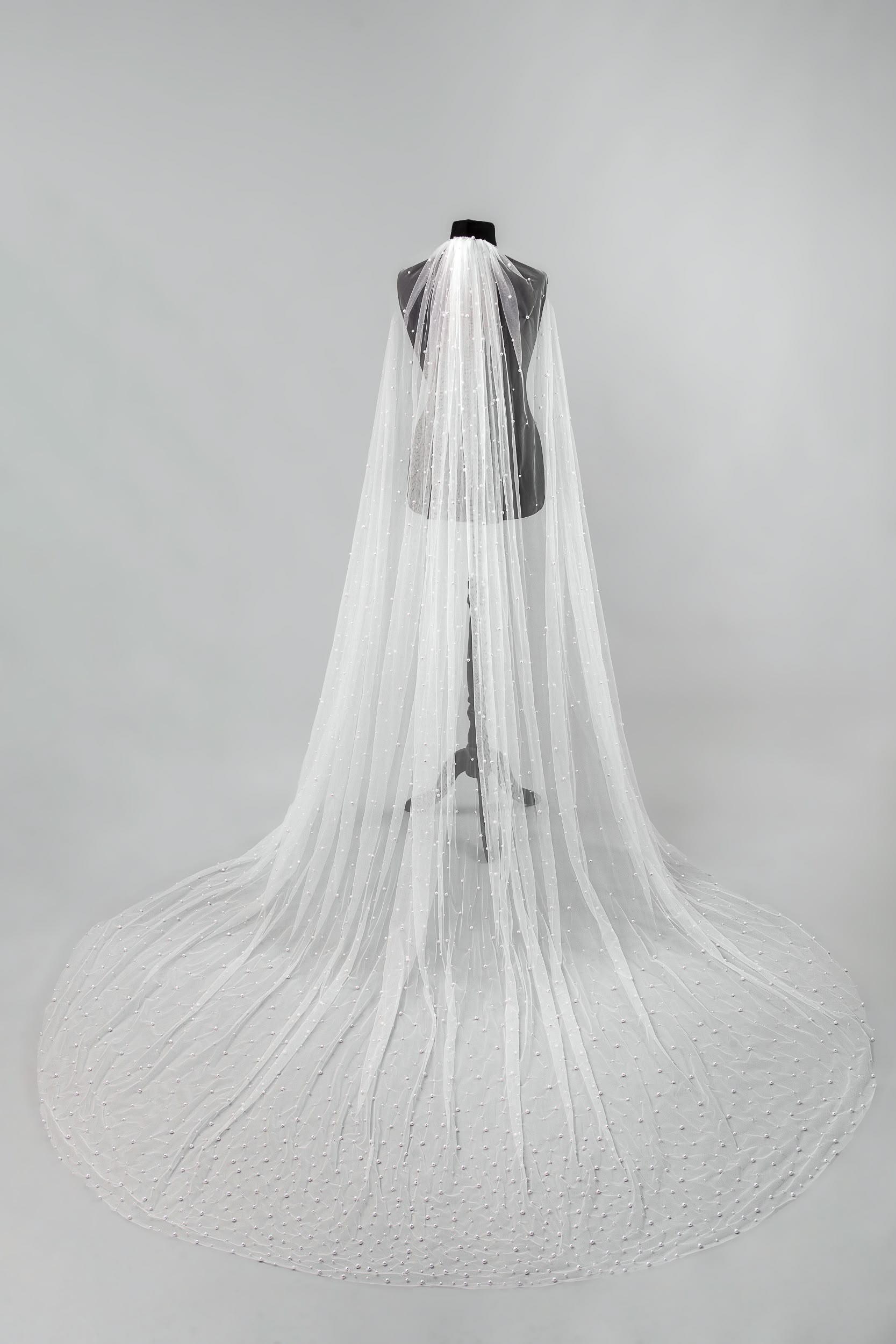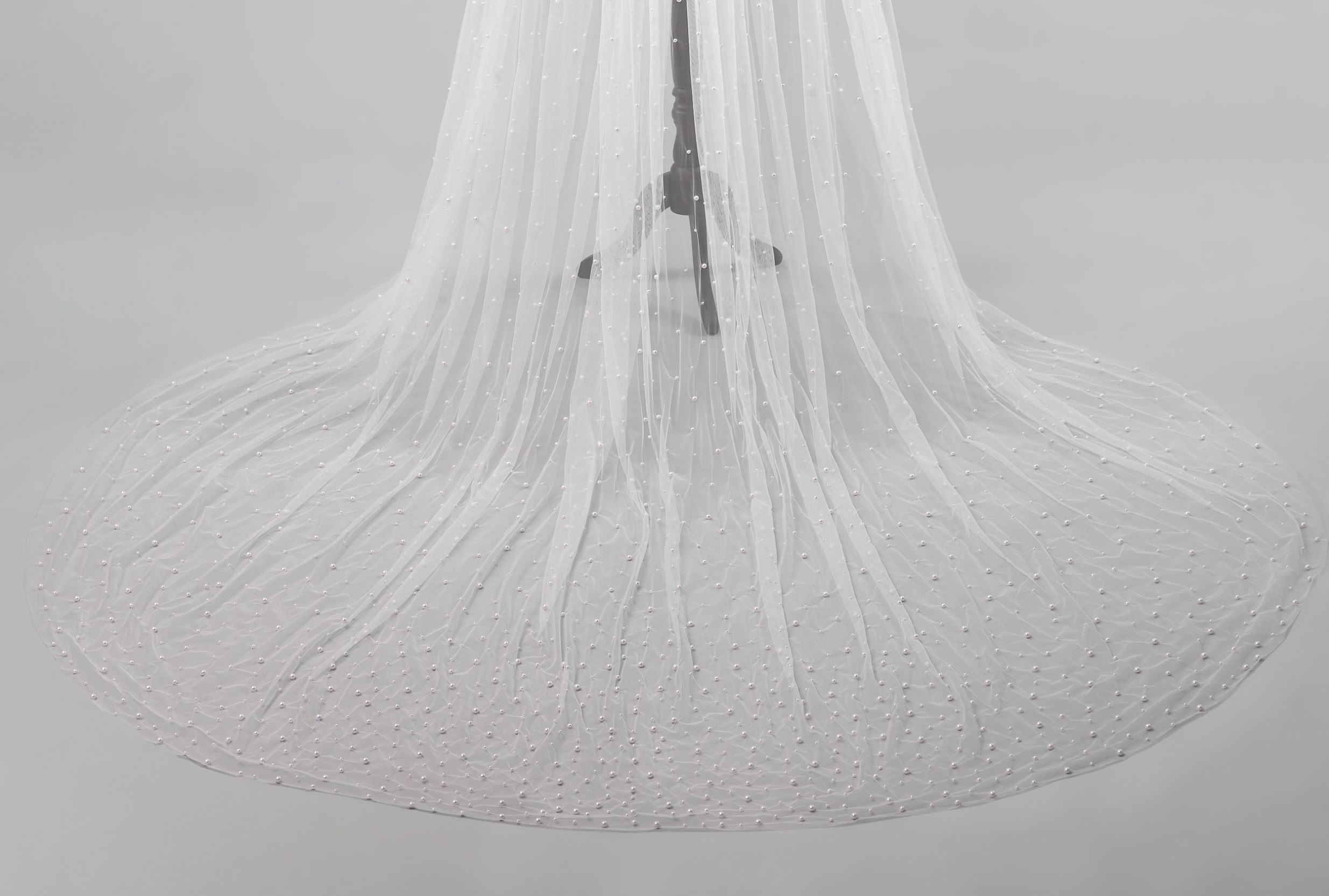 Espectacular velo para novia hecho en medida única especial, 370 x 280 cm, repleto de salpicado de perlas que lo hacen único